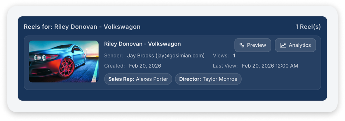 Connect your Simian account and eliminate manual data entry; automatically bring reels and associated data from Simian directly to leads in Reel.io.