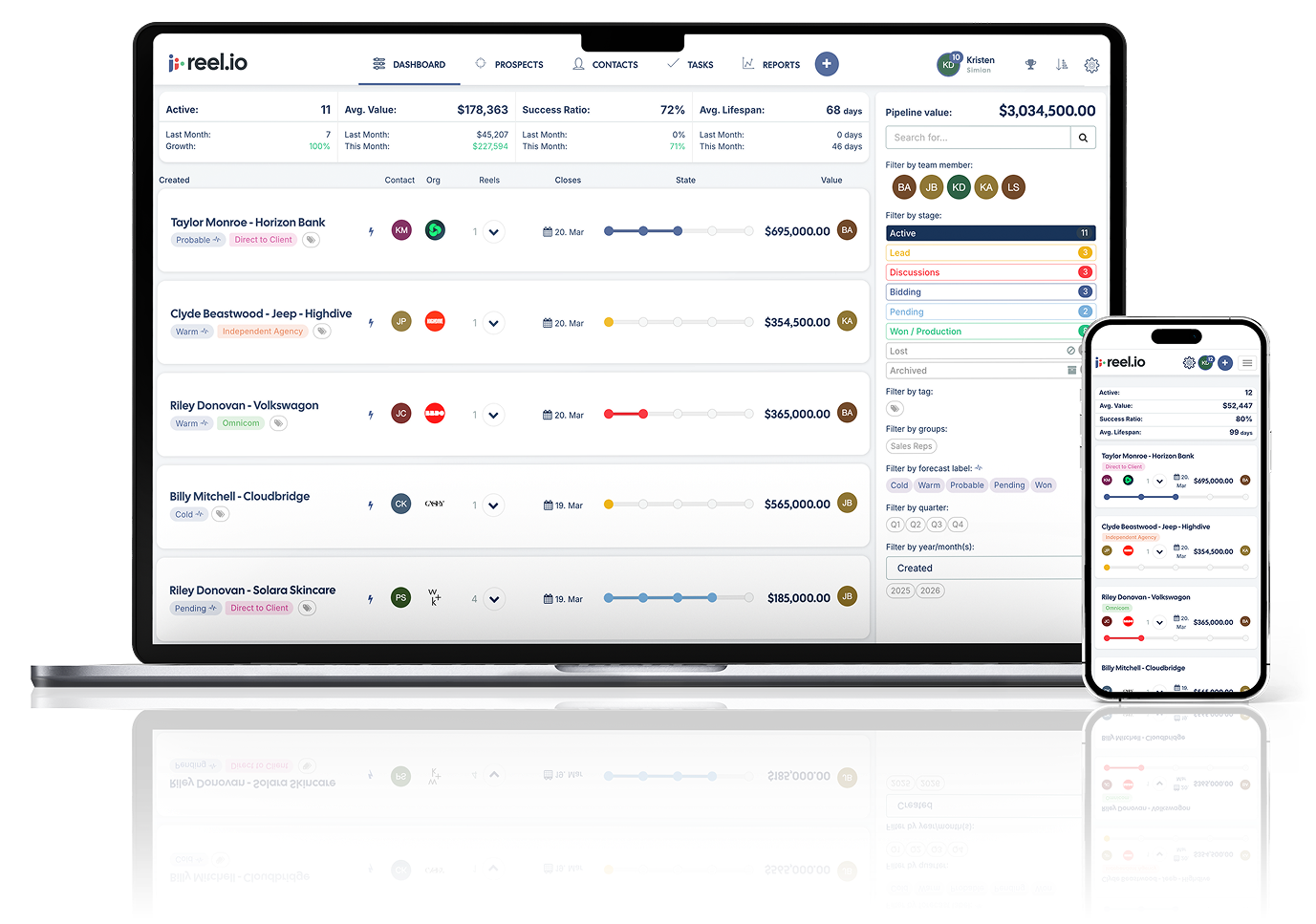 Reel.io is built specifically for production and post-production sales teams. No complicated setups, no feature bloat and no headaches from dealing with clunky interfaces.